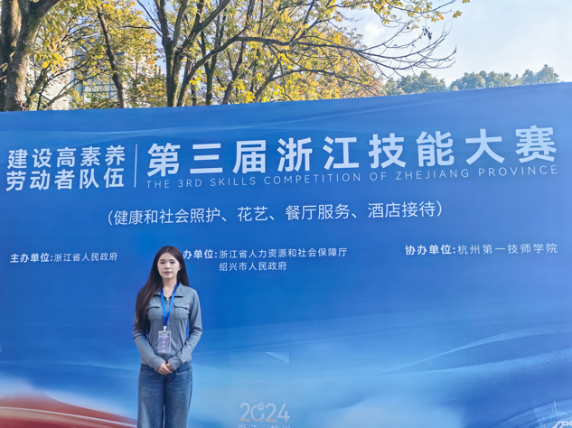 在2024年11月初举办的第三届浙江技能大赛“餐厅服务”赛项中,我校旅游学院两支队伍在该赛项中奋力拼搏,经历激烈比拼,由李静老师指导的队伍脱颖而出,最终荣获三等奖。