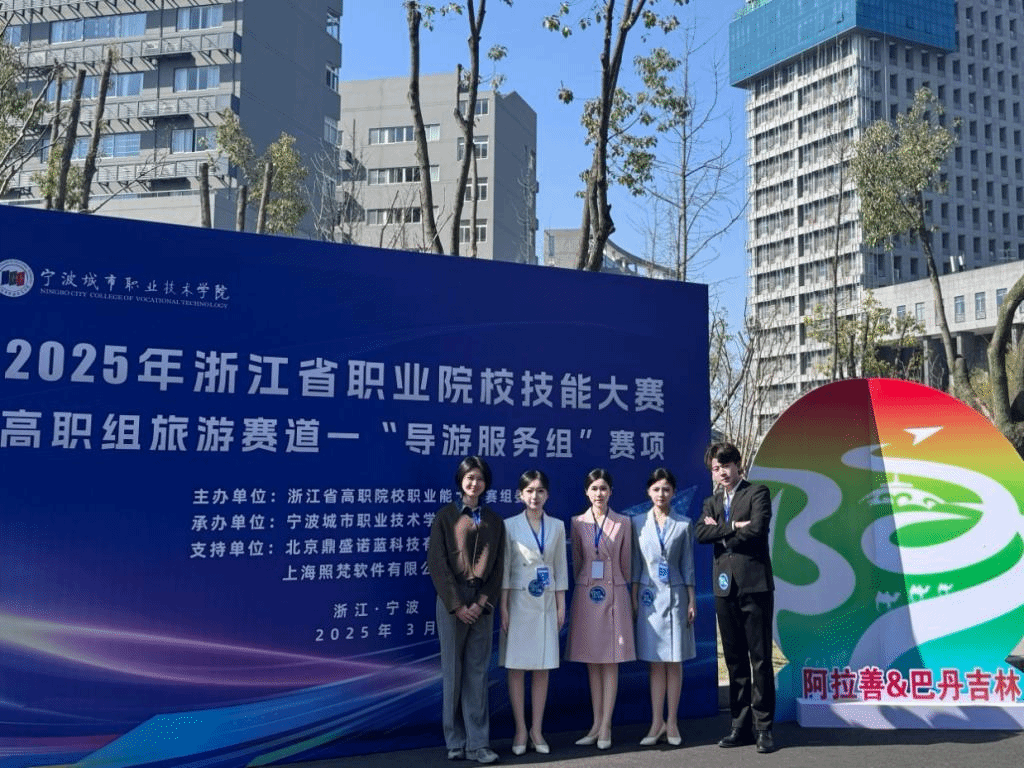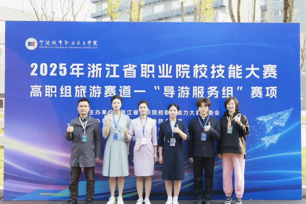 在2025年3月21—23日举行的浙江省职业院校技能大赛高职组旅游赛道一“导游服务组”赛项中,我校旅游学院参赛团队凭借扎实的专业技能和出色的团队协作,取得了较好成绩。其中,蓝晨毅、黄晨曦、李仁梅、卢妤洒四位同学,在黄刚、邓捷老师的悉心指导下,以“经济大省挑大梁”和东西部协作为主题的项目荣获大赛银奖;张麦莎、郑明静、蒋佳浩、俞然四位同学,在段学成、徐利老师的指导下,以蚂蚁岛红色旅游为主线、拒绝“躺平”为主题的项目荣获大赛铜奖。