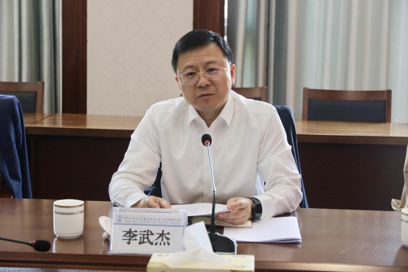李武杰部长对学校特色办学路径和办学成果表示肯定,他强调,学校要以政治建设为统领,坚持用党的创新理论铸魂育人,精心组织实施学习教育,确保学习教育走深走实。学校要以内涵建设为牵引,对标“双高计划”建设标准,打造特色专业群,创新开放办学模式,努力打造一流的旅游健康类职业院校。学校要以服务大局为方向,健全校地合作机制,积极推动“产才双进”行动,不断提升人才留舟贡献率,为促进地方发展提供有力支撑。学校要以队伍建设为关键,落实“三看”“三破”“三到”选任干部要求,激发干部积极性主动性创造性,营造干事创业的良好氛围。学校要以固本强基为根本,切实扛起管党治党、办学治校主体责任,夯实基层基础,守牢意识形态阵地,推动学校各级党组织全面建强、全面过硬。