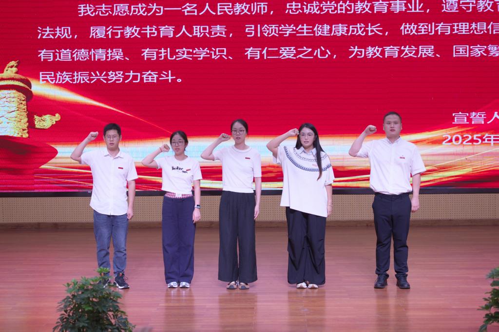 会上,副校长孔志华宣读了2025年先进集体和先进个人表彰名单,校领导为获奖教师代表颁发证书并合影留念。韩梦梦老师作为教师代表发言,5名新入职教师庄严宣誓。