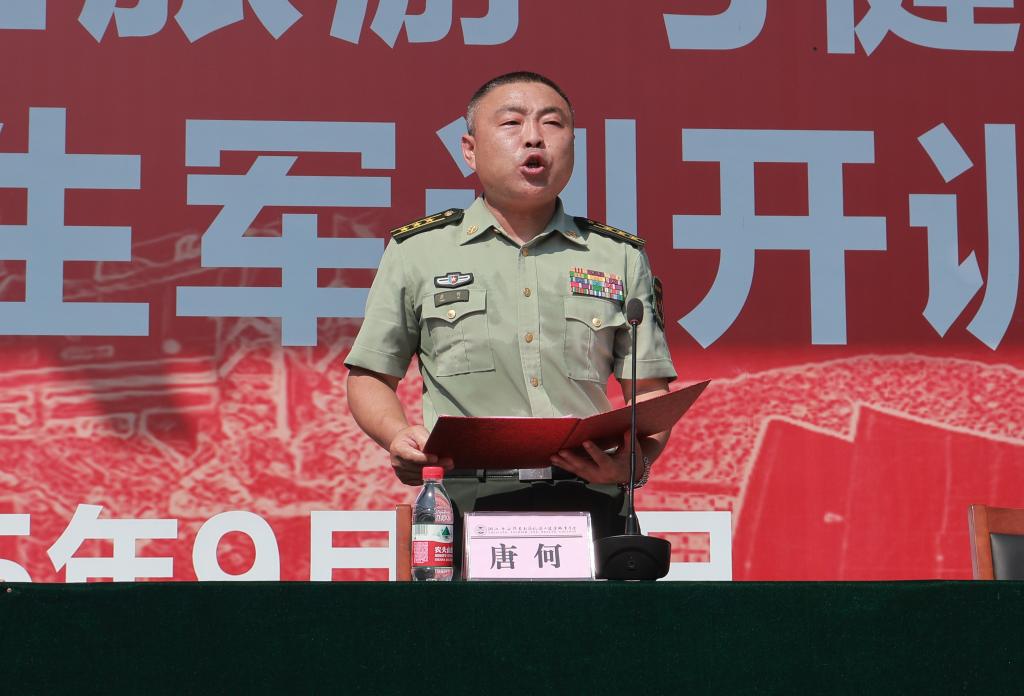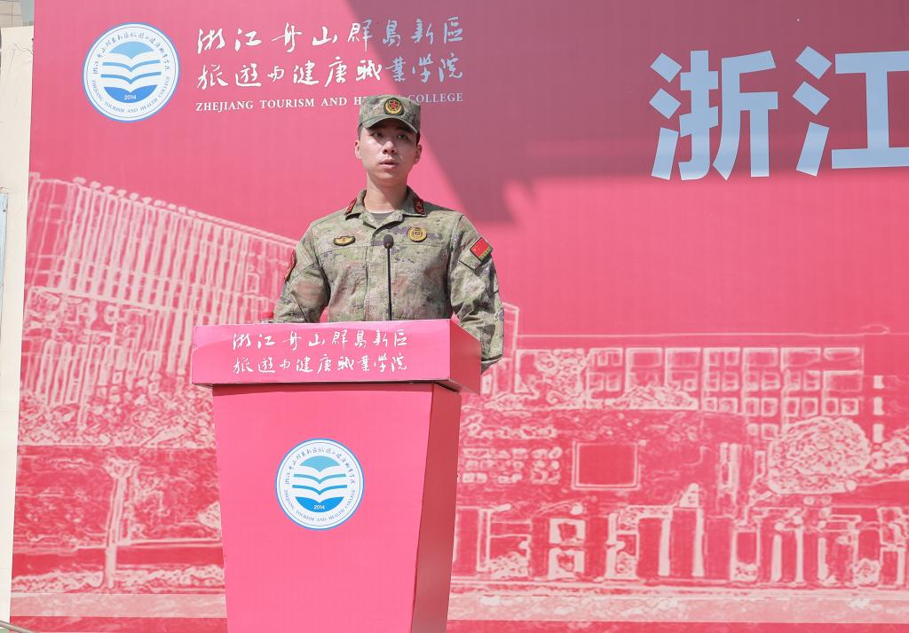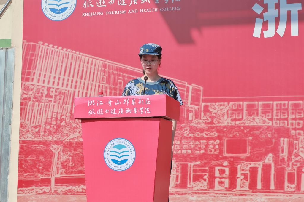 健康学院孙泽瑶作为军训学员代表发言。她表示,军训期间要成为纪律的践行者,严格服从命令,自觉遵守纪律;要成为意志的锻造者,不断磨练意志,努力强健体魄;要成为成果的传承者,将军人作风融入今后的学习与工作之中。