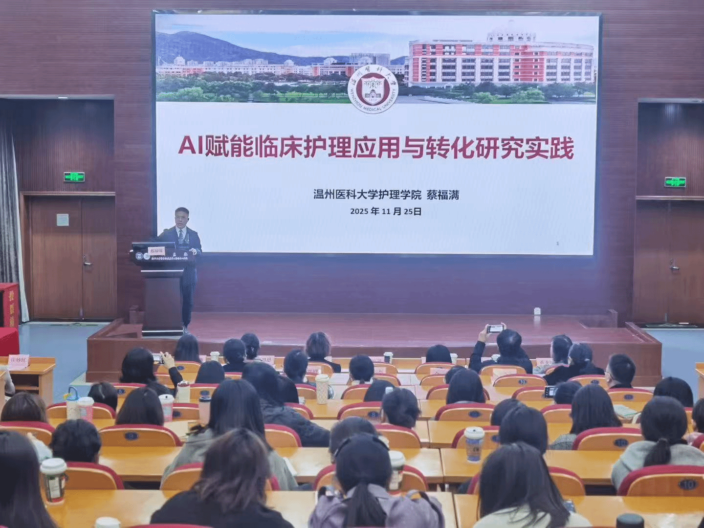 随后的学术报告环节内容丰富,紧扣临床与教学实际。温州医科大学护理学院院长、博导蔡福满教授首先作了题为《AI赋能临床护理应用与转化研究实践》的专题报告,深入阐述了人工智能技术在护理领域的应用前景与实践路径,为护理科研与临床创新提供了新思路。