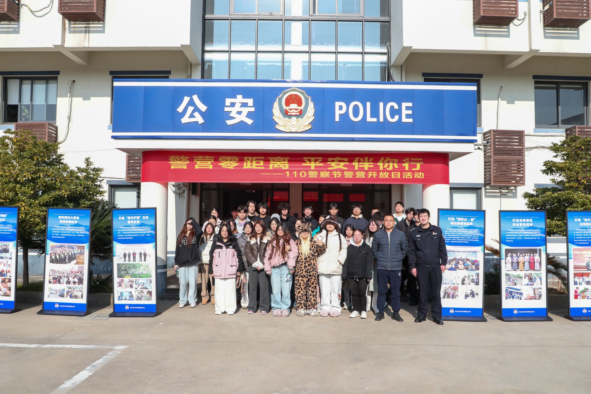 为进一步拉近警校距离,增强大学生安全防范意识,近日,普陀山公安分局举办"警营开放日"活动,邀请我校学生走进警营,近距离接触警用装备、感受科技警务魅力,接受生动的反诈安全教育。