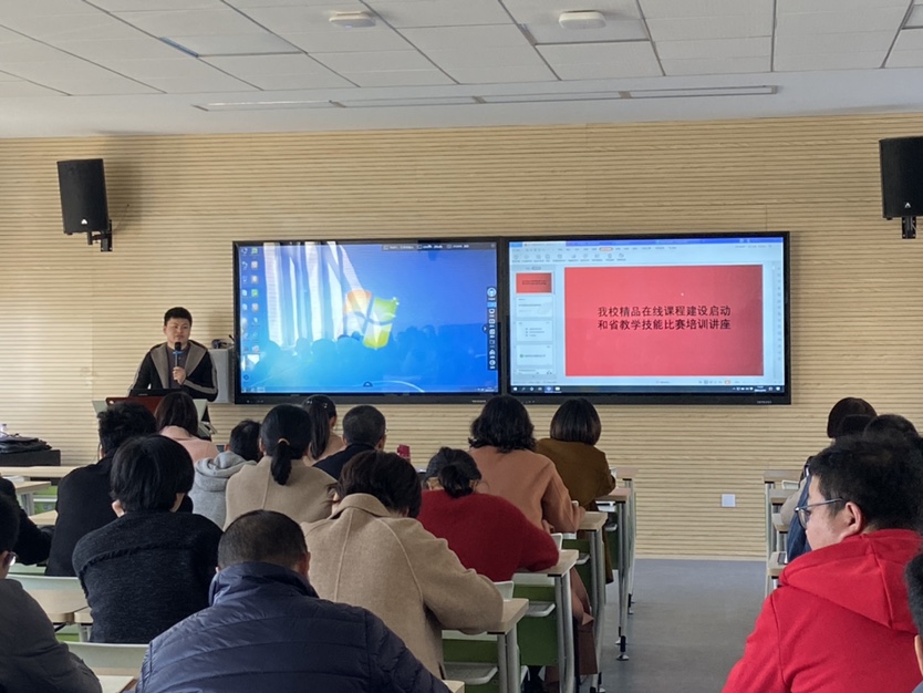 为了促进我校教学信息化建设和教育教学改革,启动我校精品在线课程建设工作及辅导培育我校教师教学能力提升,2021年3月10日下午,教务处邀请了教育部全国高校教师网络培训中心杭州分中心主管候玉鑫、智慧职教研发与服务培训主管储俊杰在我校明德楼303智慧教室开展了课程建设和教学能力比赛培训的讲座,全校80多名教师积极参加了此次讲座,讲座由教务处副处长李慧刚主持。