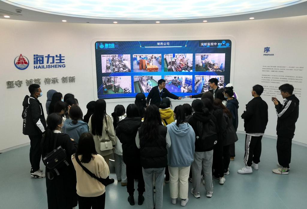 此次学习活动邀请海力生集团团委副书记翁杰作为讲解员,为我校学生介绍舟山的历史、舟山海洋食品产业发展历程和海力生集团发展史、产业现状、企业文化等。