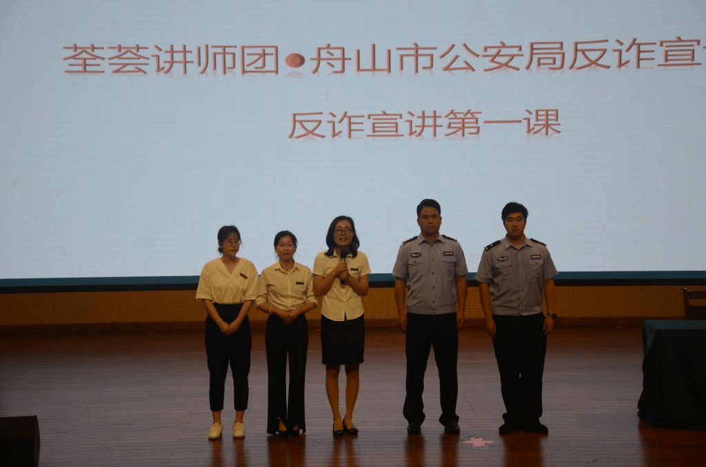 本次讲座邀请到舟山市荃荟讲师团和舟山市公安局反诈宣讲团共同开展,主讲人为舟山市公安局反诈宣讲团王警官。王警官从什么是电信诈骗,电信诈骗的主要形式、怎样预防电信诈骗等方面入手,运用了大量详实的数据、生动的案例,为同学们上了精彩的一课。讲座过程中,王警官通过台上台下互动、趣味问答等方式,让同学们进一步了解电信网络诈骗相关知识,加深印象。