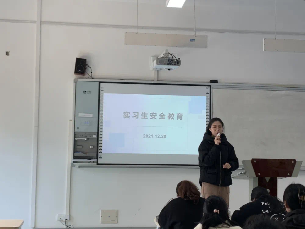 在随后的安全教育大会中,旅游学院党总支副书记郑婷璐借鉴真实案例提醒同学们重视实习安全问题,同时结合当前形势给同学们做了一次全面的实习安全教育。由于当前疫情形势严峻,郑书记特别强调了要加强自身防护,同时从人身安全、防诈骗等多个方面对同学们做了提醒,分析了在实习中可能存在的各类安全隐患,并提出了相应的预防办法和解决措施。