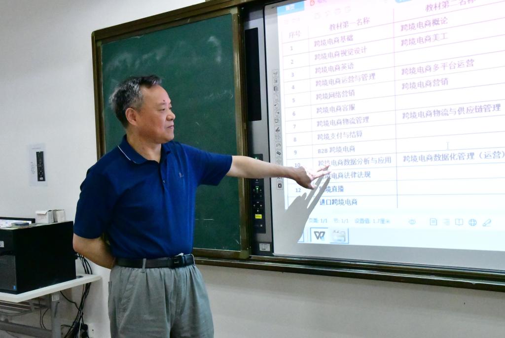 浙江舟山群岛新区旅游与健康职业学院校长顾问、商务学院行政负责人沈凤池教授主持研讨会。会议对跨境电商课程体系构建、跨境电商资源开发进程等方面进行了探讨,特别是对于教材编写的清单、名称、样式、时间节点、任务分配等具体问题展开了细致有序的交流,进展顺利,效果明显。