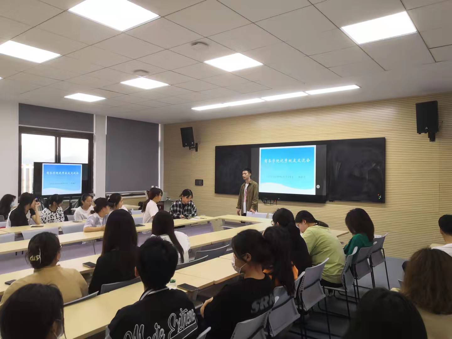 为发挥优秀校友的榜样作用,激励在校学子明确学习目标和方向,5月24日晚,由学工部主办的优秀校友返校交流会在教学楼504举行。
