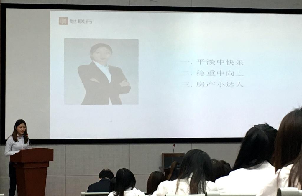 在宣讲会上,现任职于杭州世联卓群房地产咨询有限公司的商务系2015届毕业生赵珠以学姐的身份,向在座的学弟学妹们分享了自己的实习以及工作经历。她从“平淡中快乐”的工作氛围、“稳重中向上”的工作态度、“房产小达人”的工作目标三个方面出发,结合自己在世联公司从大三实习一直到毕业后转正并成为业务骨干的经历,鼓励学弟学妹们能够积极参加各单位的面试、找到自己心仪的实习单位,并对学弟学妹们在此阶段比较感兴趣的问题做了一一的列举和解答。赵珠同学的此次宣讲给即将踏上实习就业之路的学弟学妹们做了一个极好的引领和示范,相信会对商务系2020届毕业生有所启发。