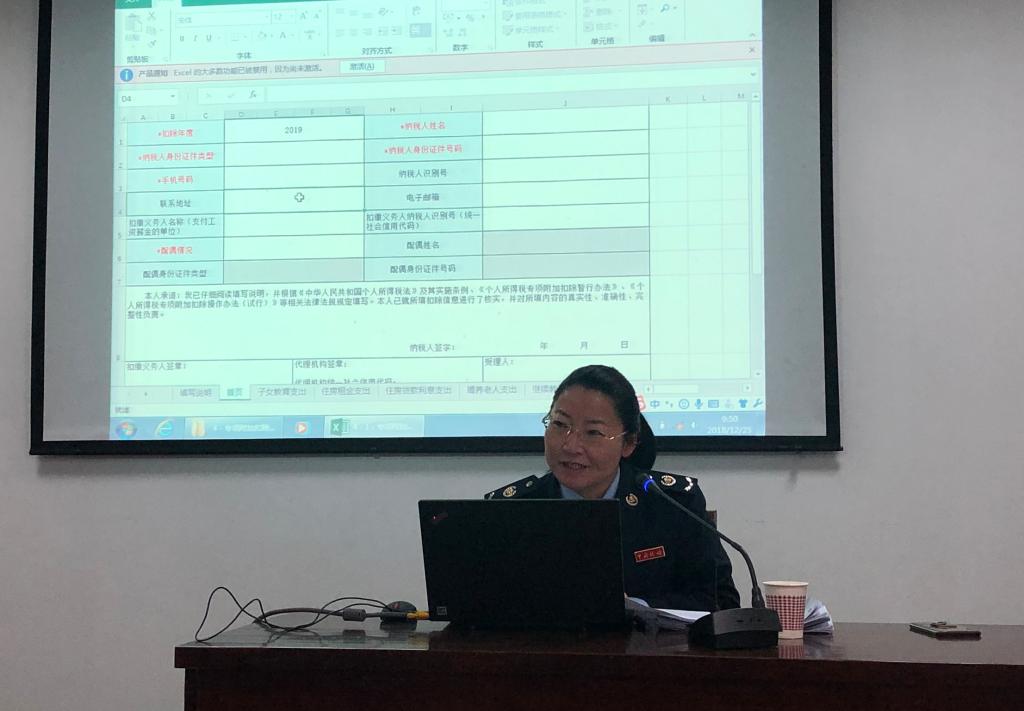 本次培训主要讲解了享受新个税专项附加扣除政策的条件、专项附加扣除信息表的填写以及申报方式。培训过程中,税务局老师还一一解答了纳税人提出的各类问题。通过此次培训,纳税人对当前的新个税法有了一定的了解,税务工作人员统一了关于个税的工作做法,为广大纳税人提供了便利,为推进2019年1月1日个税改革相关工作奠定了基础。