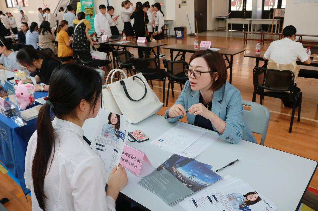 招聘会现场气氛热烈,展位前人头攒动,同学们纷纷就工作内容、发展空间、薪资待遇等问题向招聘单位进行咨询。此外,为了方便招聘单位对我校实习生有一个更加深入的了解,旅游分院还在双选会之前安排了专门教室作为企业宣讲会会场,并派三位教研室主任全程陪同,力求做好招聘服务工作。