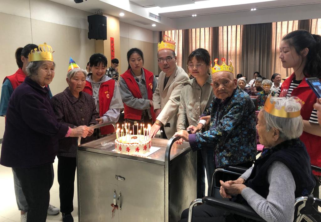 5月25日上午,健康分院红十字志愿者们在辅导员郑婷璐老师的带领下,赴普陀天颐老人之家为老人们举办“最暖与您在一起”主题生日会。