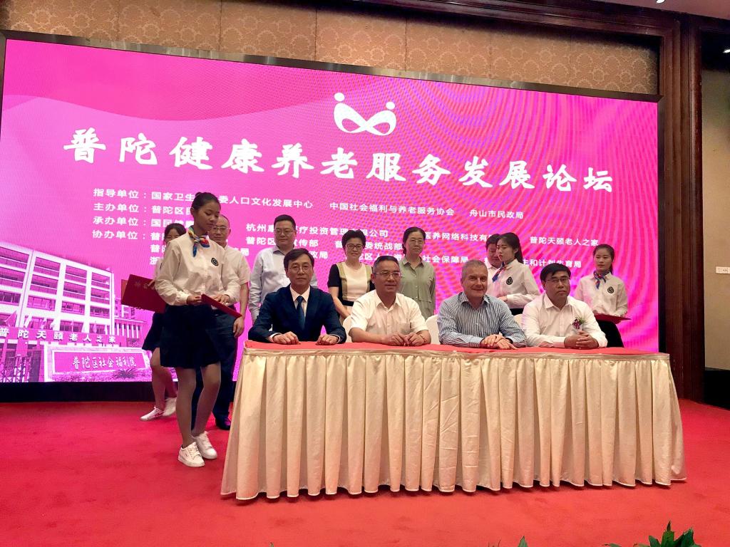 2018年6月11日,在普陀健康养老服务发展论坛上,我校与杭州康久医疗投资管理有限公司成功举行了校企合作签约暨授牌仪式。原浙江省政协副主席陈艳华,国家卫计委人口文化发展中心主任奉雯,中国社会组织促进副会长梁星心,中国社会福利与养老服务协会副会长朱于山,荷兰博组客养老护理集团亚洲区董事长司徒文,国民健康养老网执行总编朱惠民,康久医疗投资管理有限公司董事长耿海波和普陀区委区政府、市民政局主要领导,我院院长郑能波、健康分院院长竺静出席论坛或相关活动。