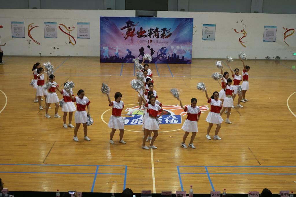 经过领导致辞,评委代表和运动员代表宣誓,比赛在同学们的呐喊声和欢呼声中正式开始。所有参赛队伍同台表演,队员们整齐有力的动作,新颖别致的造型,全情投入的状态,配合动感向上的旋律,尽显了大学生的青春活力与昂扬的风貌,赢得了观众们的一阵阵掌声。