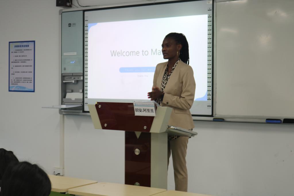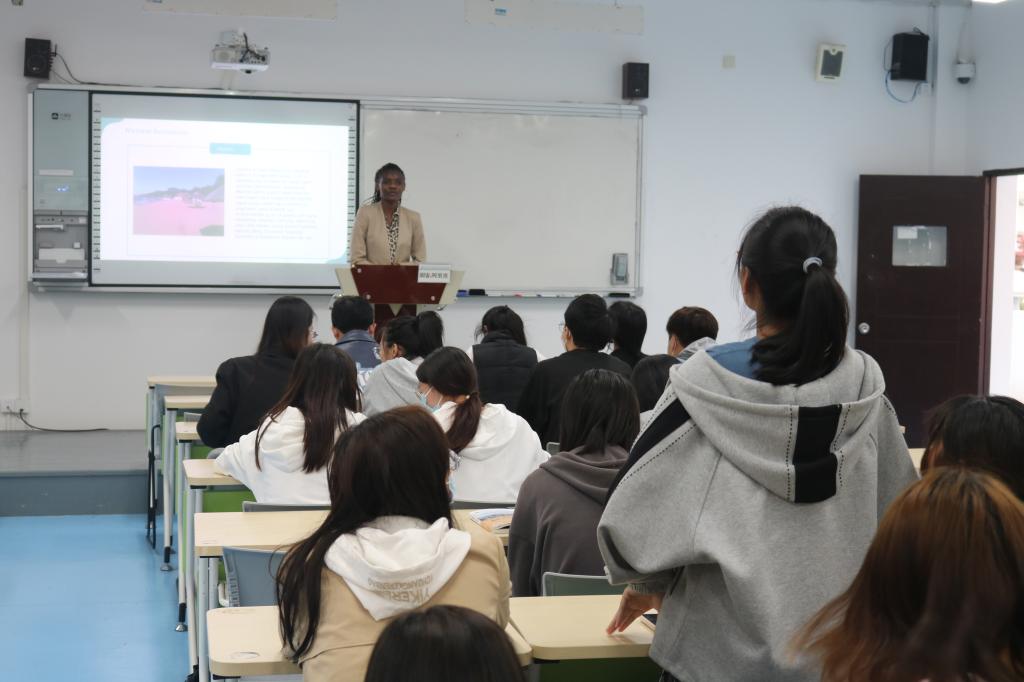 讲座中,外教Joan首先从自己的祖国——马拉维共和国的简介开始,再从马拉维丰富的旅游资源、人文资源、民俗风情等方面展开,对马拉维著名的旅游景点马拉维湖、马拉维湖国家公园、木兰杰山脉、奇尔瓦湖等进行了详细的讲解。在场的同学们反响热烈,更是在演讲过后与外教进行英语提问与交流互动。通过这次讲座,同学们对非洲东南部内陆国家马拉维的地理地貌和风俗文化有了初步的了解,丰富了自己的旅游知识储备,也提高了英语实践使用技能。