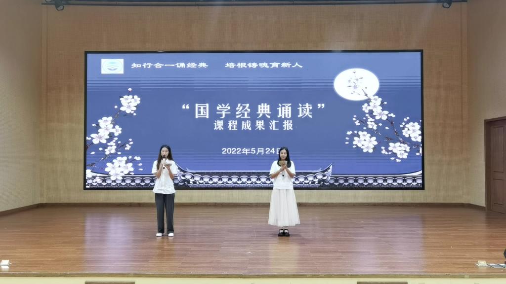 作为人文社科与体育部的公共基础课程之一,《国学经典诵读》课程力图实现国学经典诵读的时效性与全面性、生动性与实用性的有机结合。该课程教学考查立足于人才培养的需要,采取汇报演出的方式,在课程老师的指导下,学生以内容编排、音乐辅助、服装烘托、集体汇演、个人表演等为手段,对国学经典作品进行了二次创作。以课程为载体的中华优秀传统文化的传承,既培养了学生的创新意识、实践意识,提高了鉴赏水平、审美情趣、表达能力,也促进了师生文化认同向文化自信的转化,激发了师生提升人文素养的内在动力。
