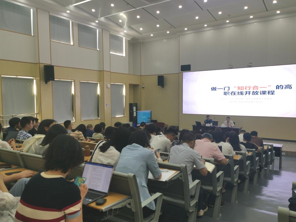 颜教授强调,课程改革是一项综合的系统工程,不能仅仅从模式的构建或课程体系的完善来定义课程改革,其中包括观念的转变、师生的角色定位,课程体系建设、课堂模式构建、课后评价反馈等方面综合的改革。讲座着重解析“情境解耦、实践驱动、引导探索”这一适用于职业教育的在线开放课程建用模式,内容丰富充实,对我校教师未来开展课程改革建设工作具有极强的指导性。讲座完毕,教师们踊跃提问, 问题涉及与讲座内容相关的多个方面,颜教授一一耐心细致地作出解答。
