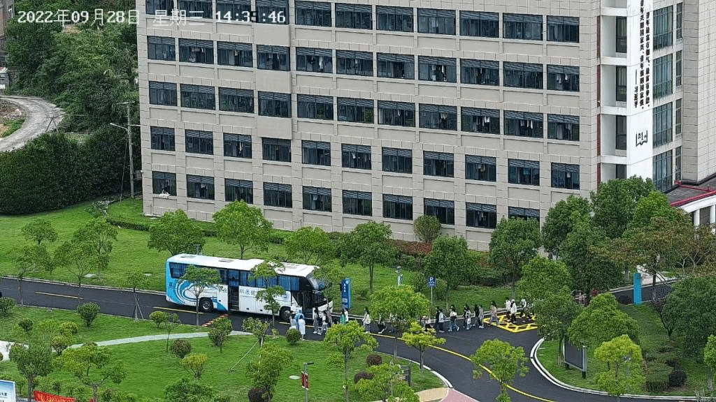 演练开始后,学工部根据应急指挥部相关指令,第一时间将情况和要求通知到宿管员和辅导员,后勤处、保卫处立即联系转运车辆,各点位工作人员迅速穿好防护服,封锁相关区域,有序引导学生转运,整个转运过程规范有序。