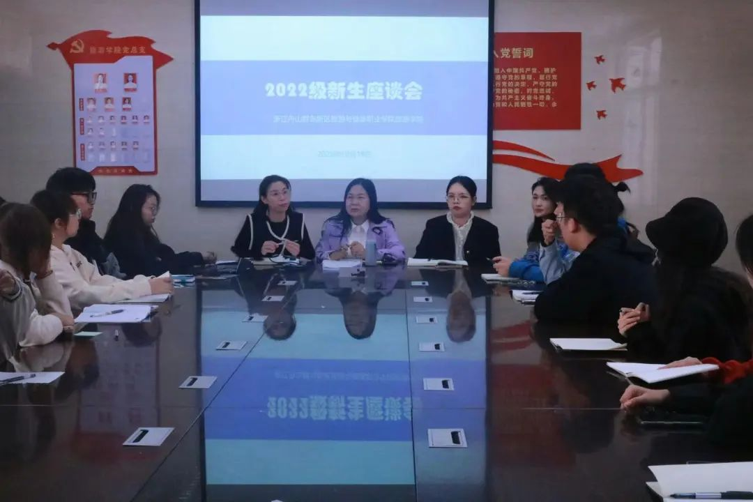 2022年10月19日中午,为了让新生更快融入校园生活,帮助新生解决新环境带来的迷茫和困惑,旅游学院召开了新生座谈会,学院党总支书记、院长杨奇美,学院党总支副书记郑婷璐,学院综合办副主任戚梦瑜和学院教学秘书徐巧露出席本次座谈会。