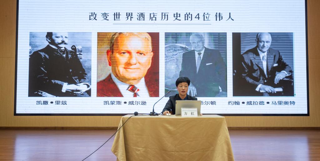 副总经理方红围绕“酒店发展历史与行业优势”这一主题展开讲座,从各个时期的酒店示例为我们通俗的讲述了酒店的发展历史,让学生们对于酒店发展有了更深刻直观的了解。同时,方副总也就酒店工作优势方面,给出了自己独到的见解。方经理精彩的讲座获得了同学们热烈的掌声。