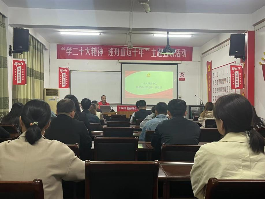 10月27日,在党的二十大胜利召开之际,根据“高校服务地方为所在地人民作贡献”的精神,应普陀山-朱家尖管委会邀请,人文社科与体育部思政教师吕青云赴朱家尖管委会对广大青年党员和入党积极分子作了“学二十大精神 述舟山这十年”的理论宣讲。