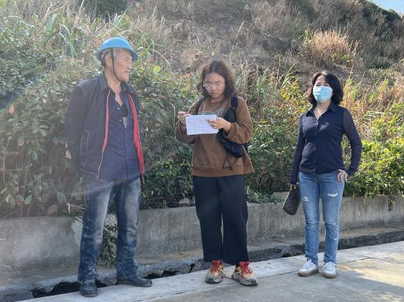 随后,小队在陈海飞老师的带领下通过问卷调查,实地走访,金平村实践站观摩及与各行业岛民交谈等方式对该岛的地形、气候、岛民生活方式、风土人情、当地经济发展、环境治理等方面进行了解及数据收集。