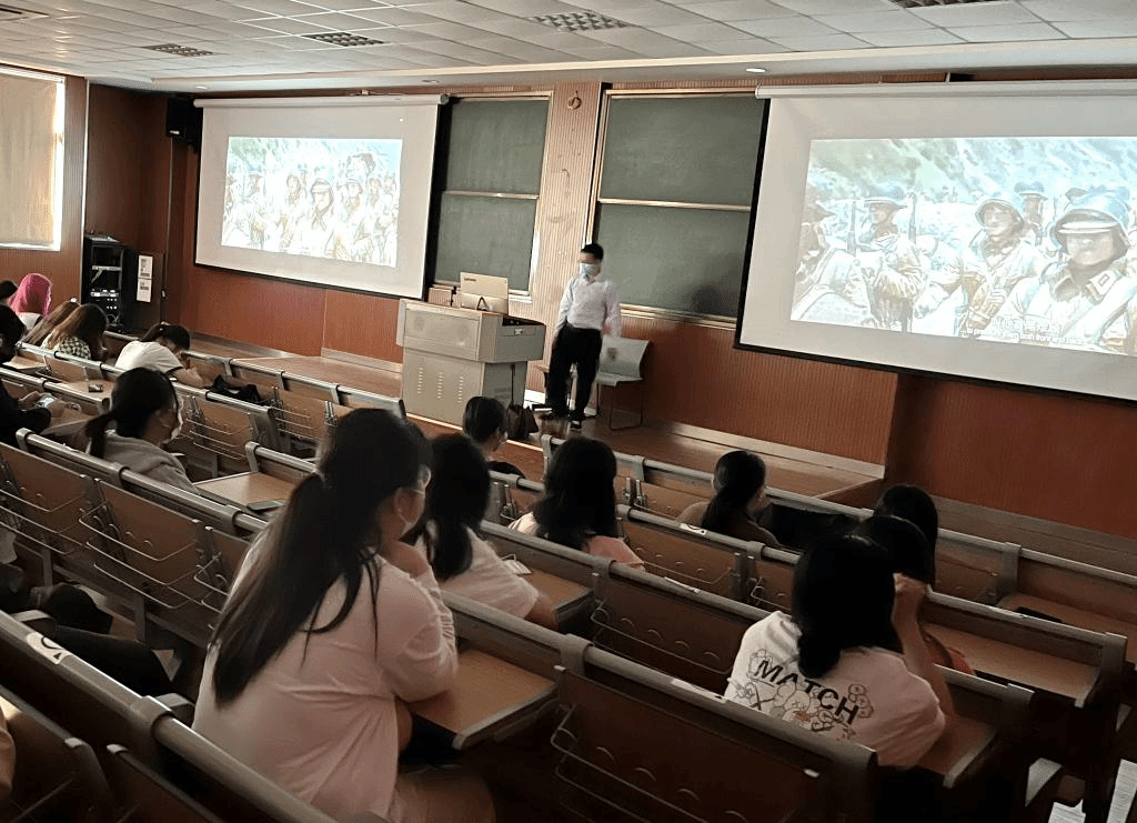 5月11日下午,21级的部分同学在教师现场讲解了红军长征历史、强渡大渡河和飞夺泸定桥的故事进行了党史教育之后,在思政教师的引导下津津有味地观看了电影《勇士》,追忆红色革命岁月,感受革命战斗红色青春的壮烈与激情。观影过程中,同学们被跌宕起伏的故事情节、鲜明生动的人物形象所吸引,当看到敌军拆除了桥上的木板,红军战士们一个个扒在索链上交替匍匐前进,两边的炮火声震耳欲聋,我们的战士在枪林弹雨中冲锋前进,最终夺下了泸定桥时,不禁流下了感动的眼泪。学生被英雄们英勇无畏、视死如归的爱国精神和国家情怀深深折服,对生活在这样一个安定和平的环境中感到庆幸。