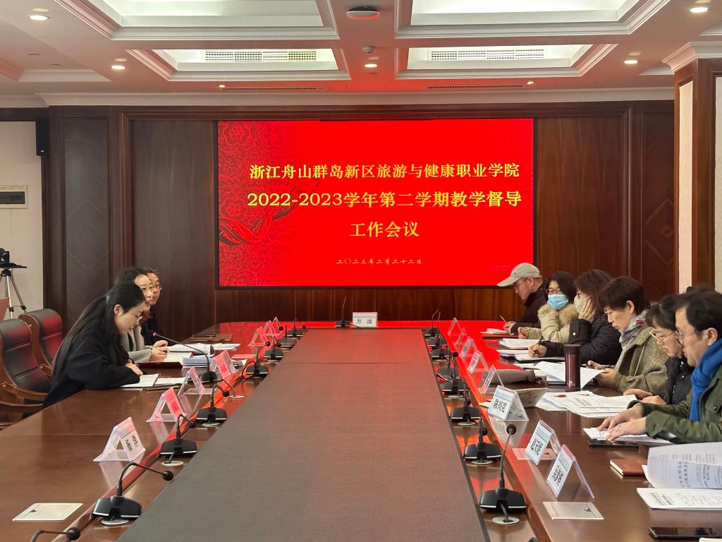 2月22日下午,2022-2023学年第二学期教学督导工作会议在求真楼二楼多媒体会议室召开,教务处处长、质量管理办公室主任邬玮玮,教务处副处长、质量管理办公室副主任严倩,校督导室负责人宋秋前以及院校两级督导出席了会议,会议由教务处副处长、质量管理办公室副主任严倩主持。