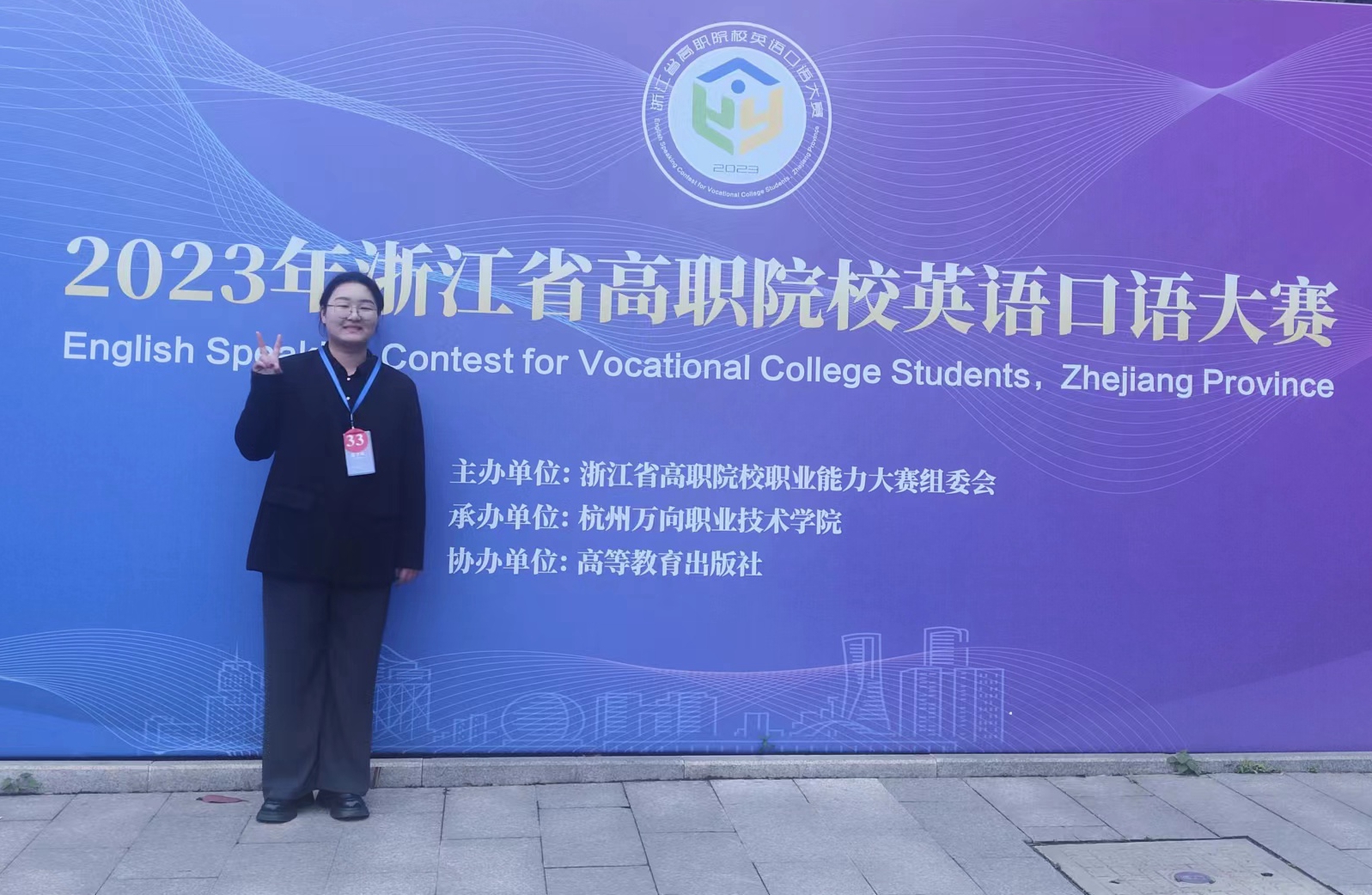 5月4日至6日,2023年浙江省高职院校英语口语大赛在杭举行。来自全省50余所高职院校的165名选手参加角逐,其中英语专业组65人,非英语专业组100人。我校学生李墨琳代表学校参赛,荣获佳绩。