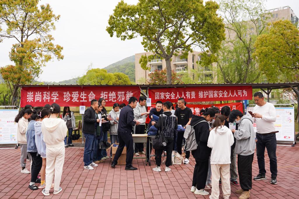 4月10日,各学院组织师生学习“国家安全教育进课堂”活动为主题的班会,宣讲国家安全的知识。14日下午,学校邀请普陀山公安分局、朱家尖街道在学校悬挂横幅宣传标语,宣传国家安全有关知识和相关案例。活动现场通过展示展板、悬挂标语、现场讲解等方式,生动地向师生科普了《国家安全法》《反恐怖主义法》《反间谍法》等国家安全相关的法律法规。随后,开展国家安全现场咨询活动。学校保卫处和“平安守护联盟”配合共发放宣传资料500余份,解答师生咨询100余人次。
