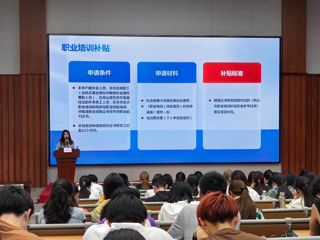 为提升学生就业创业意识,促进留舟就业创业,结合职业教育周活动安排,5月18日,校学工部联合市就业管理中心在校内举办的“职补未来,助力圆梦”毕业生就创业补贴政策宣讲会圆满落幕。
