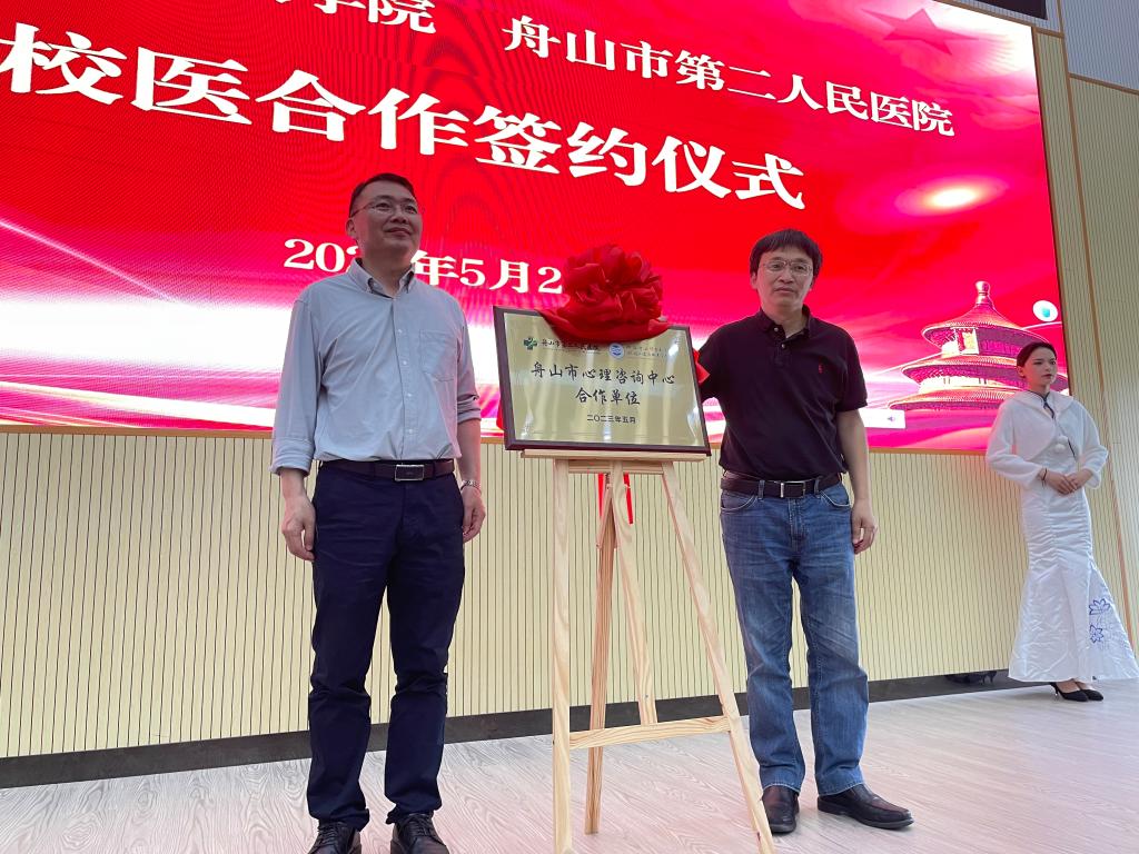本次合作,对提高我校心理健康工作水平,完善校医合作机制具有重要意义。今后,舟山市第二人民医院将根据学校需求,派遣专家入校开展专题讲座和专业培训,全方位提升我校心理健康工作队伍的专业化水平,并安排专家到学校坐诊,为部分需要接受专业心理诊疗的学生提供更加便利的心理健康服务。此外,院方还为我校学生开通了心理危机诊疗-干预-转介绿色通道,方便学生及时就医,为我校心理健康教育工作提供了积极有力的支撑。