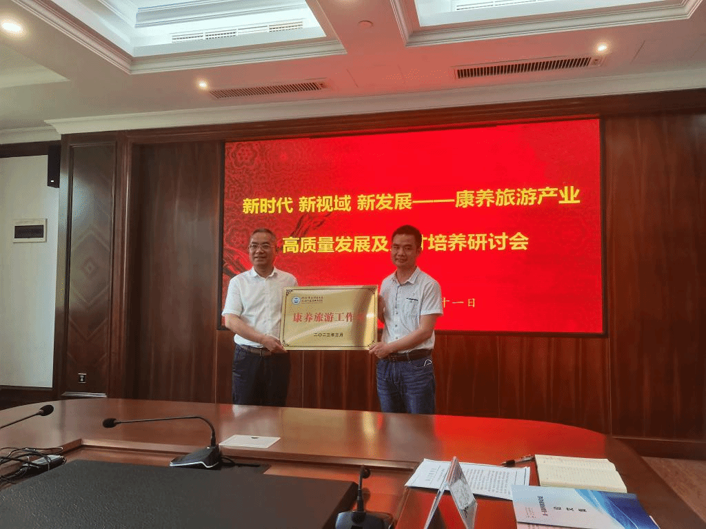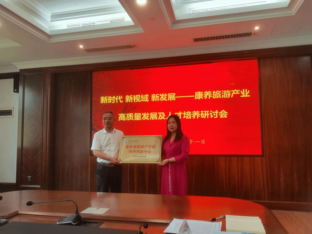 会议首先进行了“康养旅游政产学研协同创新中心”及“康养旅游工作室”授牌仪式。两个平台将以康养方向的前沿热点,为激发文旅康养市场主体活力和发展内生动力、实现高质量发展目标、探讨康养人才培养献计献策。