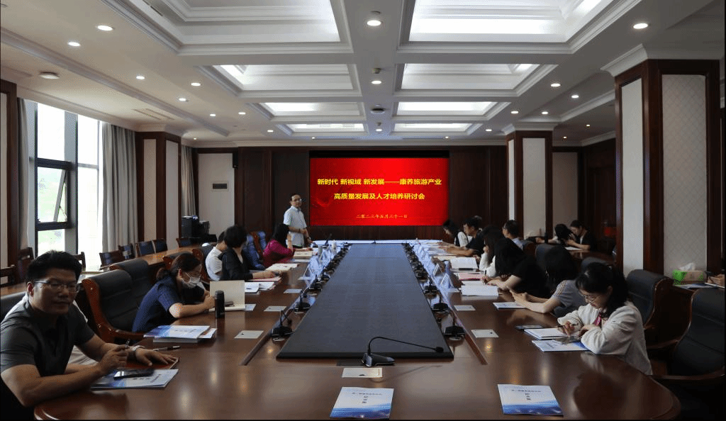 为深化我校“双高”项目专业内涵,建设高标准的康养旅游人才培养体系、高水平的康养旅游融合智库团队、高层次的康养旅游产教融合基地,助推康养旅游产业发展,5月31日下午,我校召开康养旅游产业高质量发展及人才培养研讨会。研讨会由学校科研与社会服务处处长李慧刚主持,郑能波校长、校外专家、教务处处长邬玮玮,旅游学院、健康学院负责人、教研室主任及相关专任教师参加。