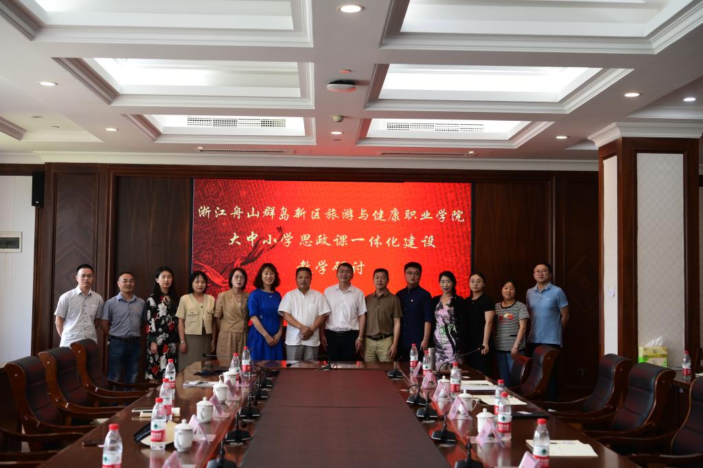 本次研讨活动还邀请了学校属地的朱家尖中学、朱家尖小学和原属地在朱家尖的舟山旅游商贸学校的德育工作分管领导和相关教师代表。会议由人文社科与体育部总支书记、主任张毅主持,部门全体思政教师参会,校党委委员、副校长孔志华出席会议。