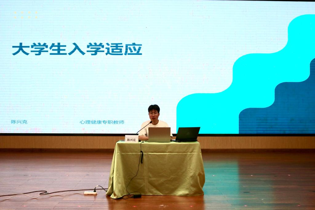 为帮助新生更好地适应大学新生活,养成良好生活与学习习惯,2023年9月19日上午10点,学工部在致远大讲堂开展《大学新生入学适应》心理讲座。心理健康教师陈兴克担任主讲,旅游学院2023级全体新生参与讲座。