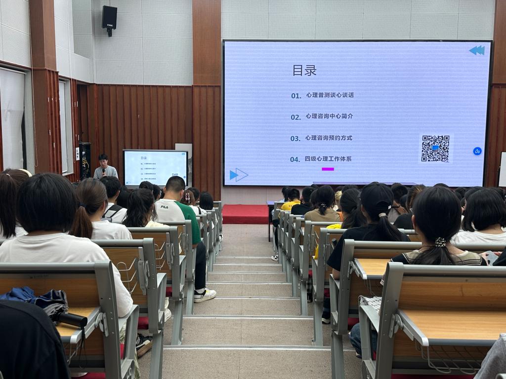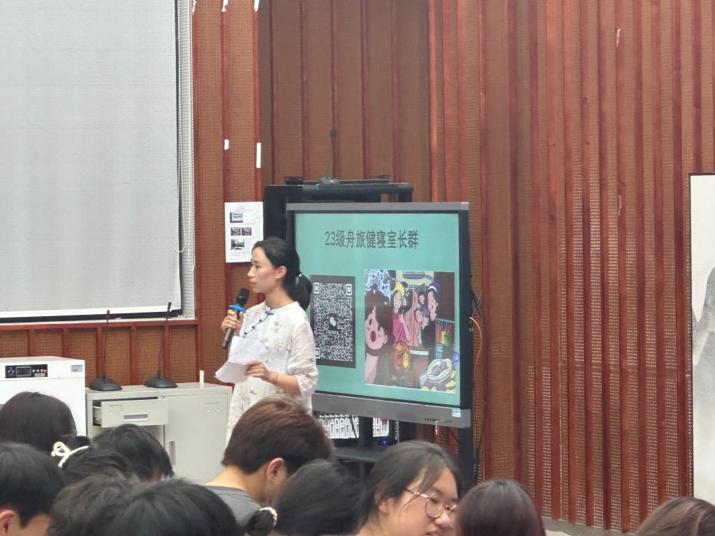 心理健康教师陈兴克在会议上介绍了校园心理中心的基本情况、预约方式,着重强调了寝室长在四级心理工作体系当中的工作职责和重要意义。