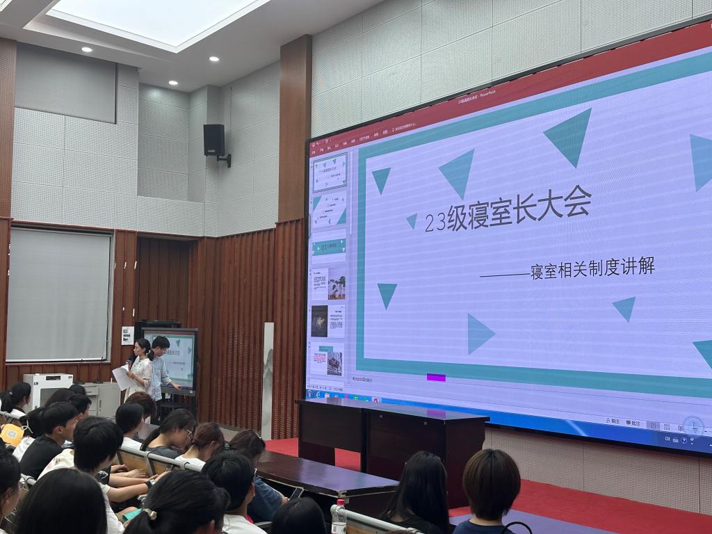 为了加强学生寝室管理,充分发挥寝室长的带头引领作用,创建安全、卫生、和谐的寝室环境,学生工作部召开2023-2024学年第一学期新生寝室长大会。学工部公寓管理员拉姆、心理健康教师陈兴克、宿管会学生干部、23级所有寝室长出席本次会议。