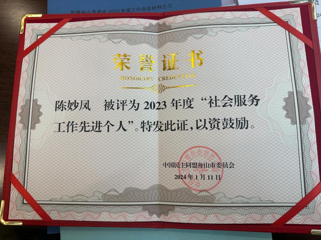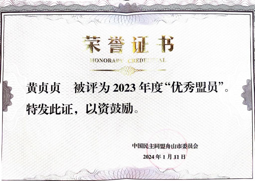 以上成果使得支部荣获2023年中国民主同盟舟山市委员会颁发的年度盟务工作优秀集体、"学盟史、读盟史"知识竞赛组织工作先进集体等荣誉称号,成员黄贞贞被评为年度优秀盟员,陈妙凤被评为年度社会服务工作先进个人。这些荣誉充分体现了旅健支部的优秀工作能力和组织凝聚力。