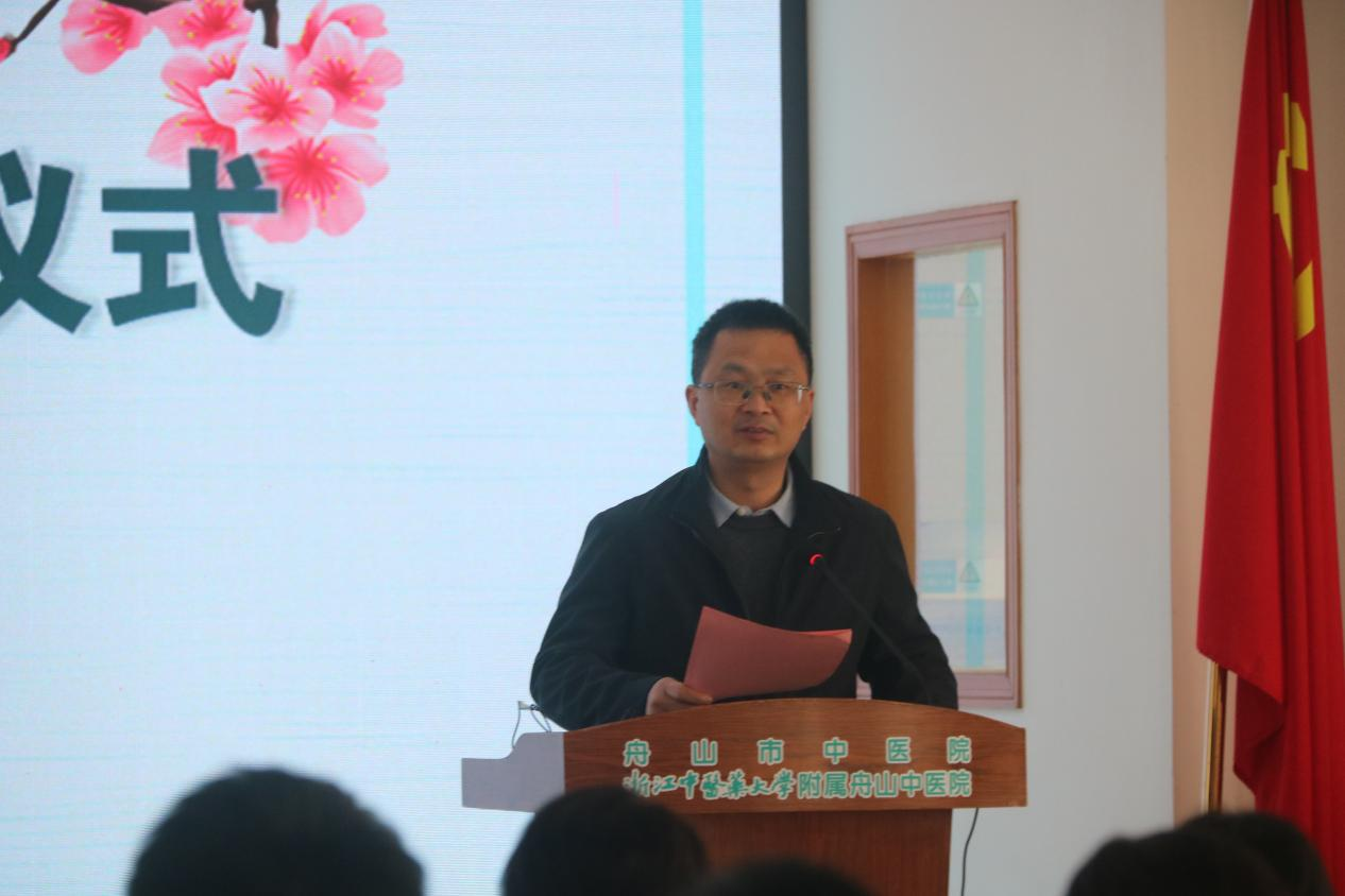 3月20日下午,我校与舟山市中医院合作举办的2023级护理(中医)专业现代学徒制班开班仪式在舟山市中医院学术报告厅隆重举行,舟山市中医院副院长李清平、俞益君及相关处(科)室负责人,我校健康学院党总支书记胡炳波、副院长马怡婷、党总支副书记王珊珊及护理教研室部分教师、辅导员,全体导师和学生参加仪式。市中医院科教科主任谢琼主持开班仪式。
