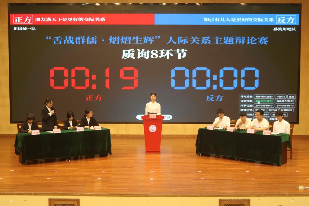 决赛共6支队伍参与,两两对决,最终选出三支优胜队伍。各队伍分别围绕“朋友满天下与知己有几人哪个是更好的交际关系”、“立场不同能否做朋友”、“合群是否有必要”这三个辩题展开激烈探讨。比赛过程中,辩手们逻辑严密,才华横溢。他们旁征博引,用丰富的知识和独到的见解阐述自己的观点,双方你来我往,唇枪舌战,展现出了高超的辩论技巧和团队协作精神,现场气氛热烈,掌声不断。