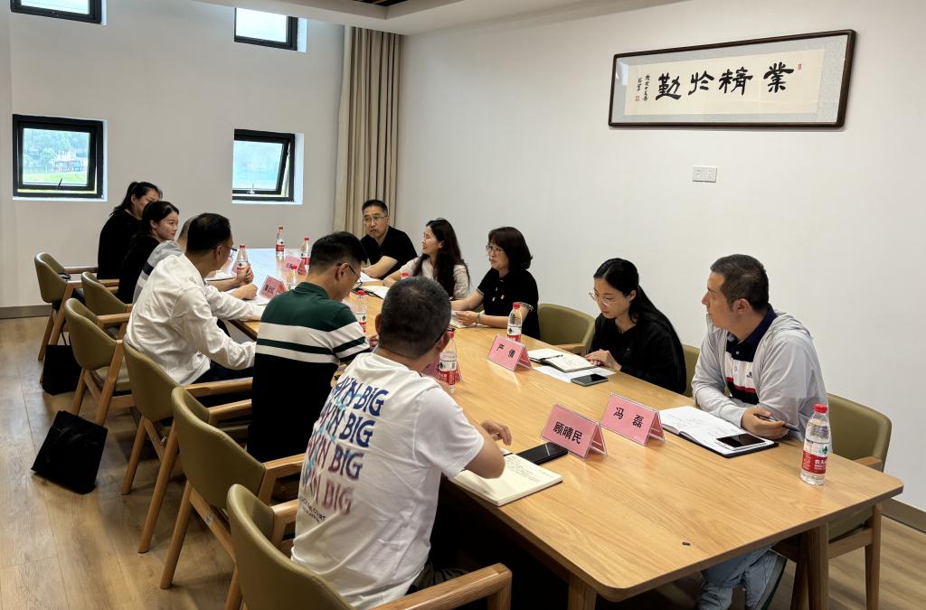 6月7日,商务学院与区残联、东大康复医院开展校企政融合座谈,在学校图书馆研讨室洽谈筹建孤独症儿童社会融合实践基地方案。