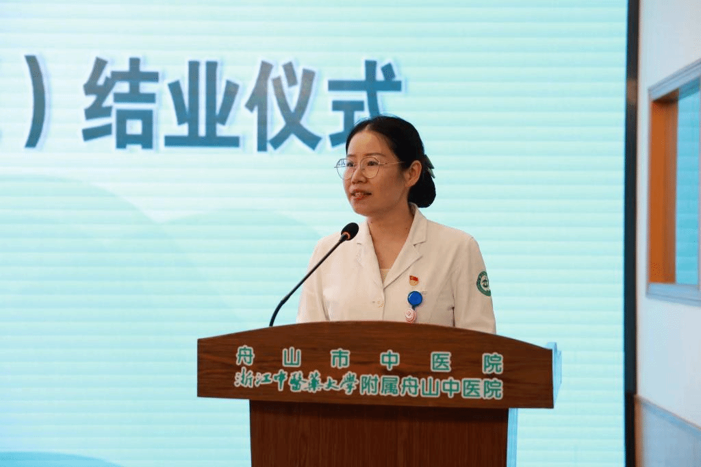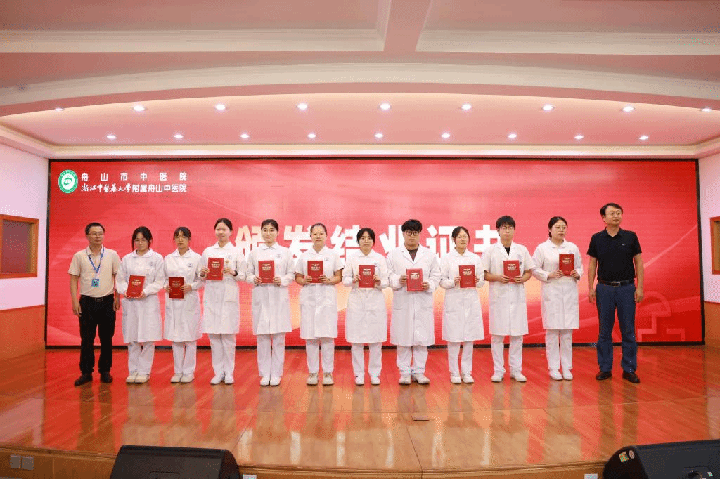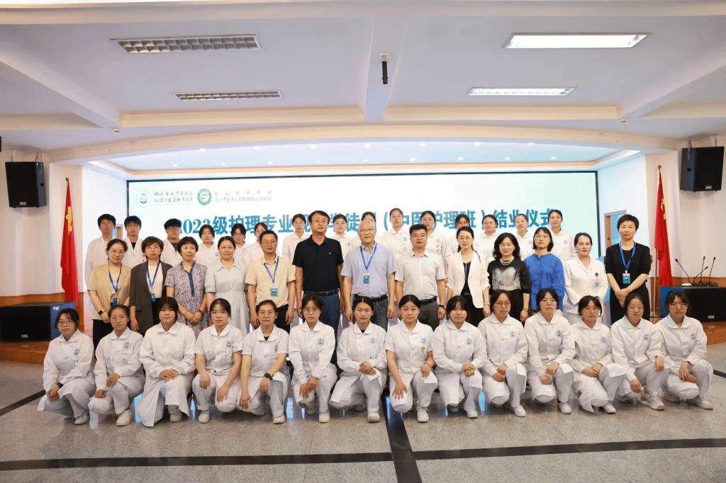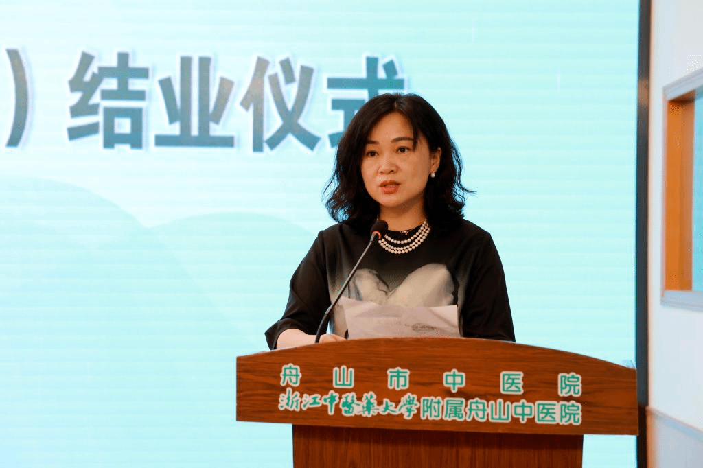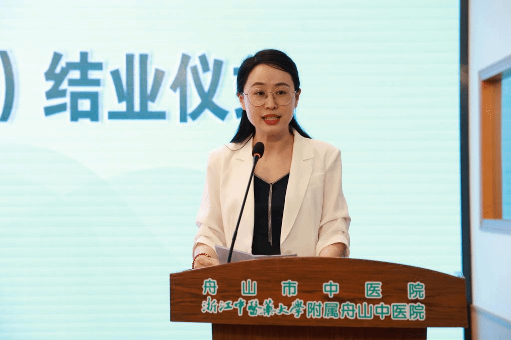 6月24日下午,2023级护理专业现代学徒制(中医护理班)结业仪式在舟山市中医院学术报告厅顺利举行。舟山市中医院院长赵嘉懿、医院党委委员、副院长李清平、俞益君及相关处(科)室负责人,学校副校长黄承、健康学院党总支书记李慧刚、副书记王珊珊、护理教研室主任张敏、支部书记王晓燕、专任老师丁优娜老师以及导师和学生参加会议。