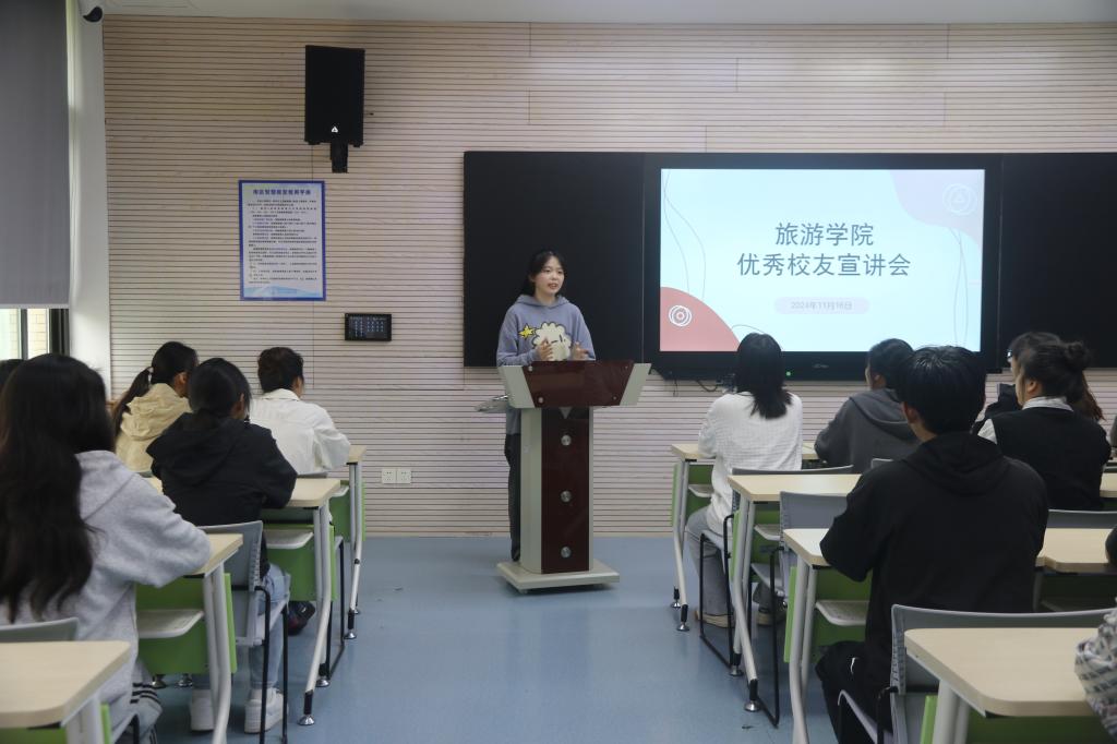 11月16日,在十周年校庆之日,学院邀请了2023届优秀校友代表周明珠和罗紫菲返校宣讲交流。宣讲会由学院党总支副书记郑婷璐主持,辅导员徐思巧、李远铭、马诗怡以及在校生代表参加交流活动。