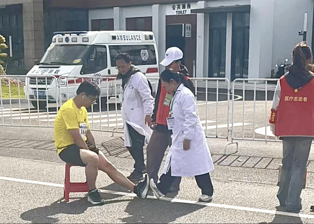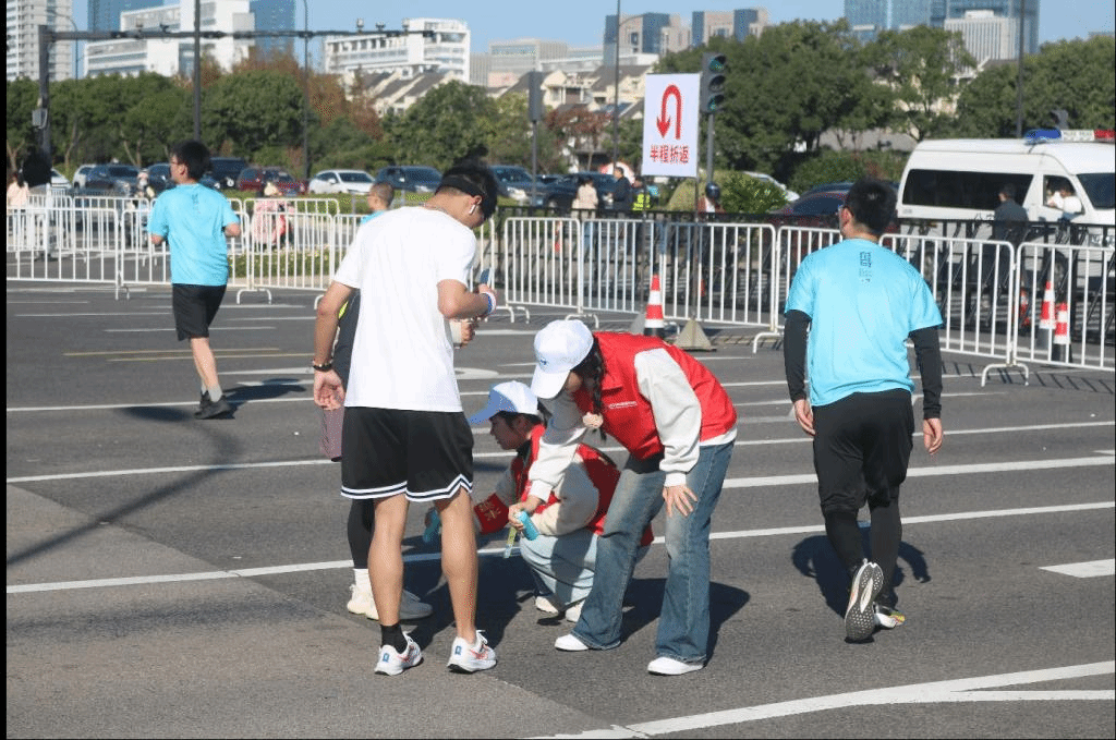 他们早早抵达岗位,严阵以待。沿着马拉松赛道,每隔一段距离就能看到医疗志愿者们专注的身影,当选手们从身边跑过,医疗志愿者们时刻留意着选手们的身体状态,不放过任何一个可能有异常的信号随时准备应对可能出现的突发状况,一旦有选手出现抽筋、扭伤、体力透支等状况,医疗志愿者们会迅速反应,第一时间冲上前进行救治。