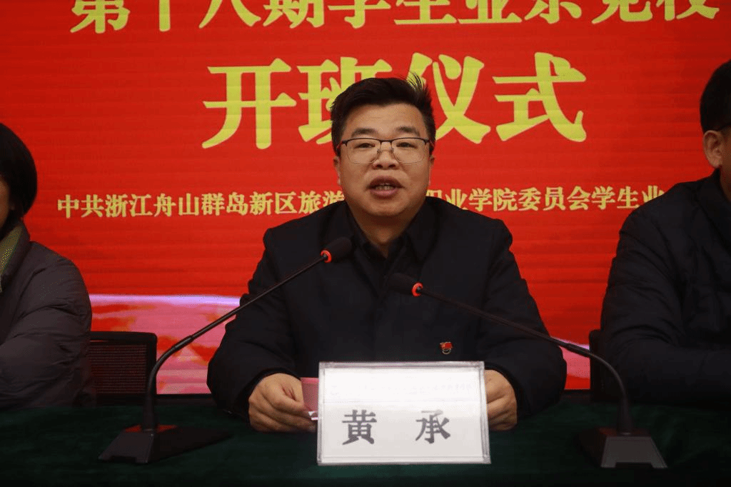 12月13日,我校第十八期业余党校开班仪式在求真楼3楼多媒体会议室举行。学校党委委员、副校长黄承,学工部部长乐优捷,组织部副部长唐洁君,旅游学院党总支副书记郑婷璐,商务学院党总支副书记冯磊出席开班仪式。仪式由学工部副部长、团委书记郑永骥主持。