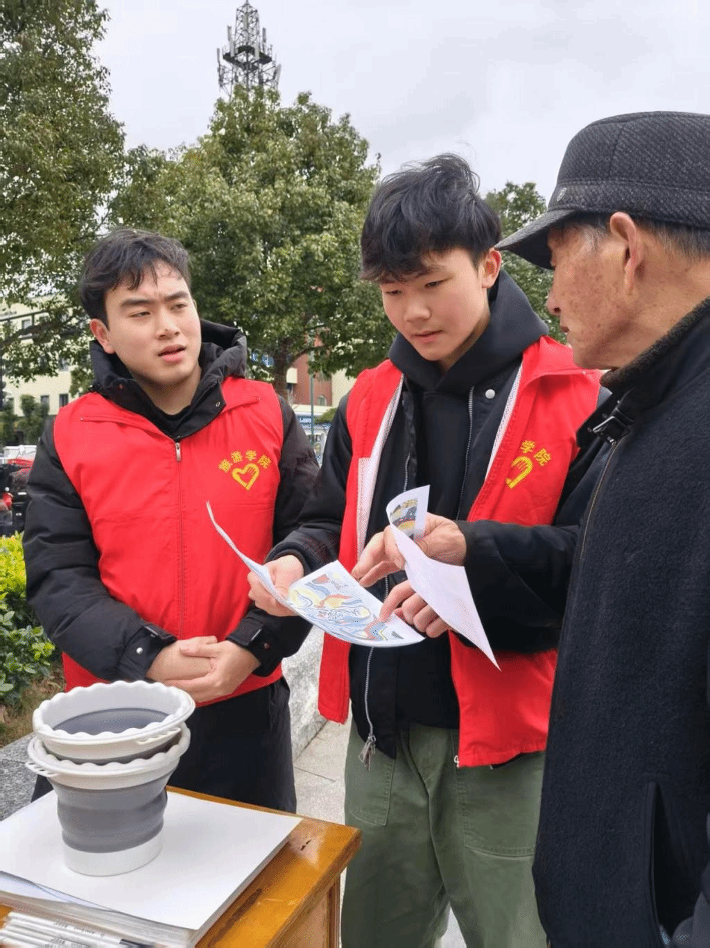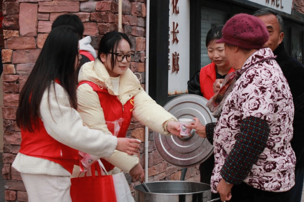 在街道,志愿者们设立“爱心驿站”,为环卫工人、快递员等人群提供免费饮水和休息区,在寒风中送上温暖。