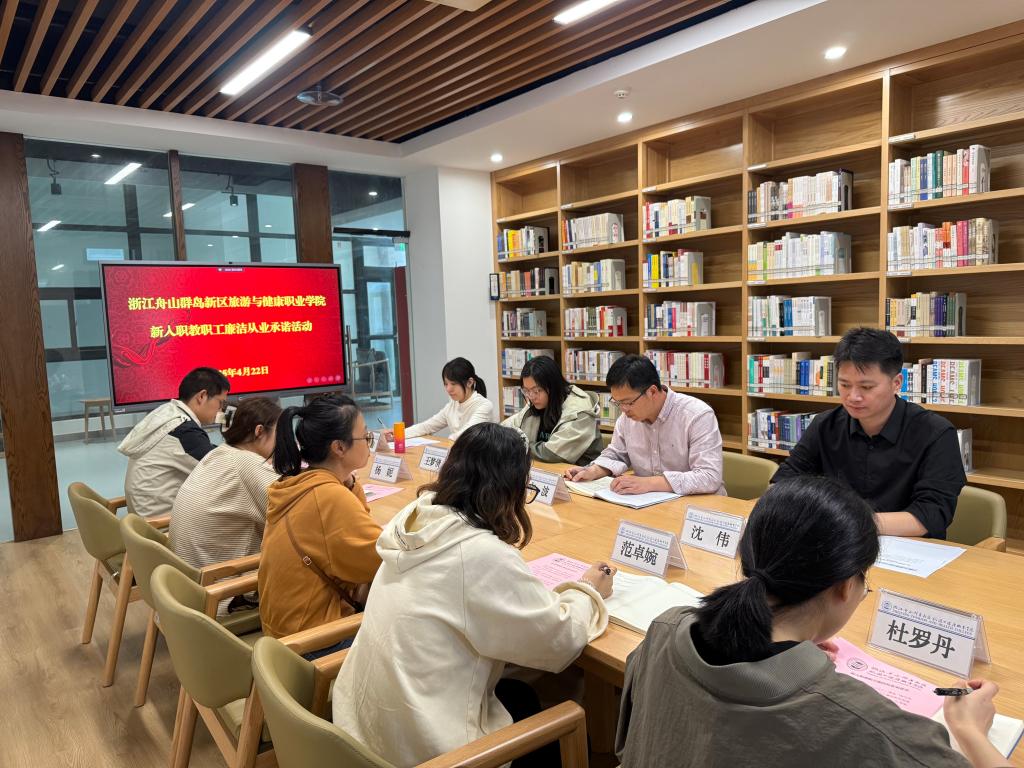 会议集体学习了《新时代高校教师职业行为十项准则》,提醒青年教职工守纪律、讲规矩、知敬畏、守底线,让大家进一步坚定理想信念,明确行为规范。8名新入职教职工庄重签订《廉洁从业承诺书》,承诺将秉承“知行合一,止于至善”的校训,永葆舟旅健人清正廉洁的本色,做到爱岗敬业、廉洁从业。新教职工代表严晨瑜作表态发言。
