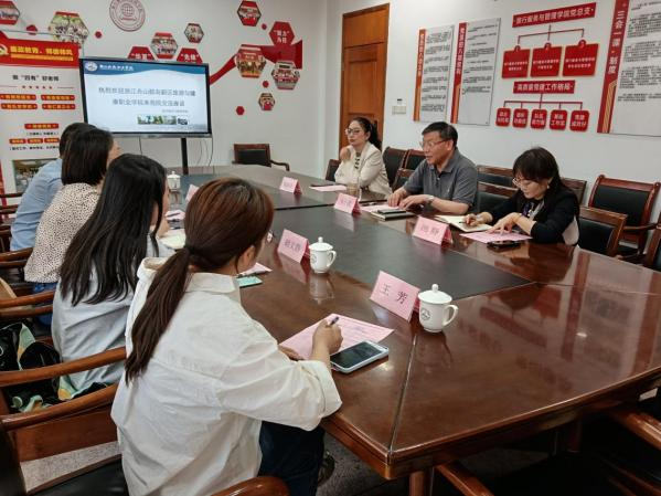 在浙江旅游职业学院主要了解人才培养模式,指导学生比赛的经验、智慧旅游专业开设情况及校企合作情况,并实地走访学校旅游实训室。